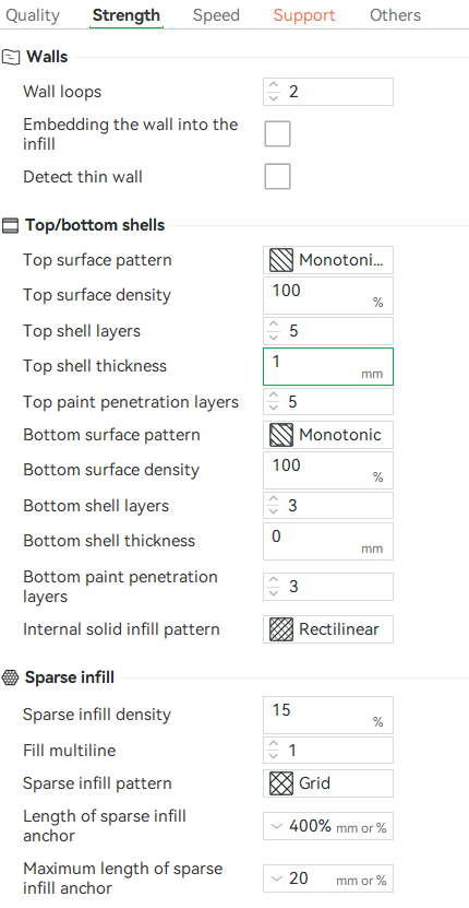 Bambu slicer settings: